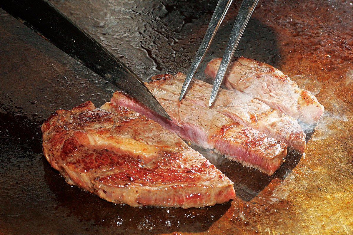 ライブキッチンで焼き上げる熱々ステーキ。握りたてのお寿司に、本場仕込みの長崎ちゃんぽん。